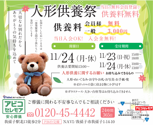 毎年沢山のご来場をいただいております『人形供養祭』を今年も開催いたします。